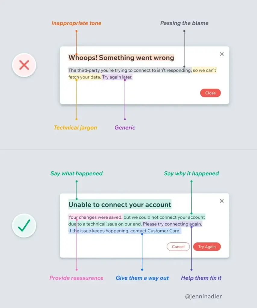 Ne hagyd a látogatót a sötétben. Egy jól megírt hibaüzenet, visszajelzés vagy állapotjelzés sokat tehet a felhasználói elégedettségért – és megelőzheti a pánikot.