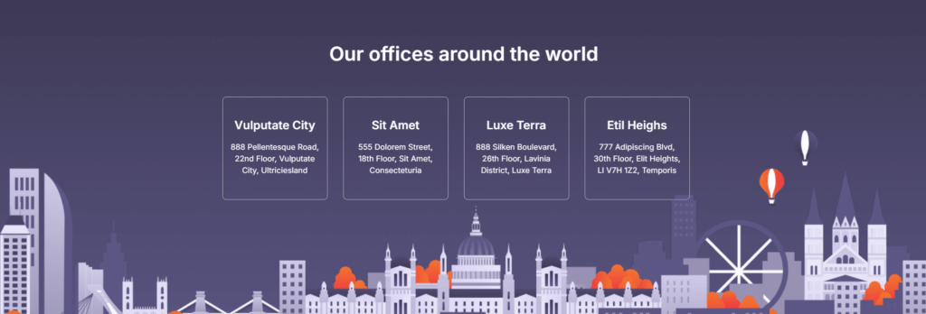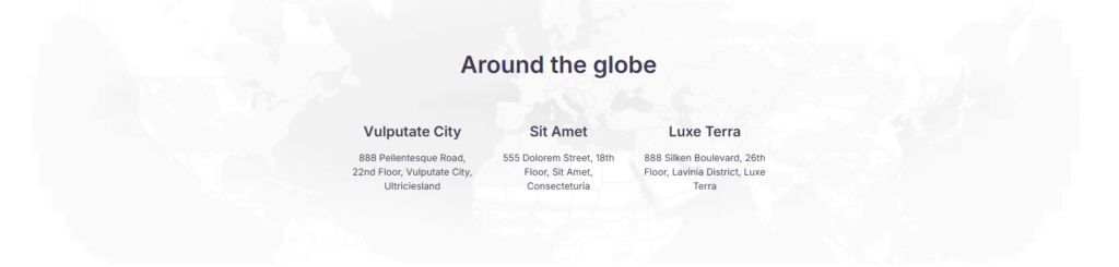 Az alábbi példában, az ügyfél több különböző iterációban szerette volna megjeleníteni a helyszíneket, ahol cégük fizikailag is jelen van.