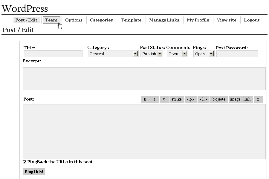 A 2000-es évek elején egy blog publikálásra alkalmas platform megtalálása még kifejezetten nagy kihívást jelentett. Erre a hiányra és egyben piaci résre 2001-ben egy francia fejlesztő (Michel Valdrighi) figyelt fel, aki megoldásként egy felhasználóbarát, az akkori weboldalakhoz képest intuitív felülettel rendelkező blog platformot készített, a b2/Cafelog-ot.